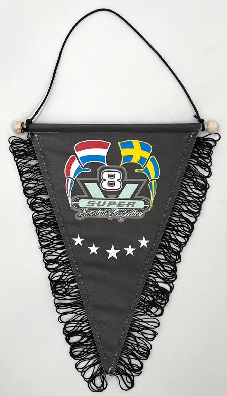 Praporek „Swedish Perfection“ 29×23 cm, barevně potisknutý z obou stran.