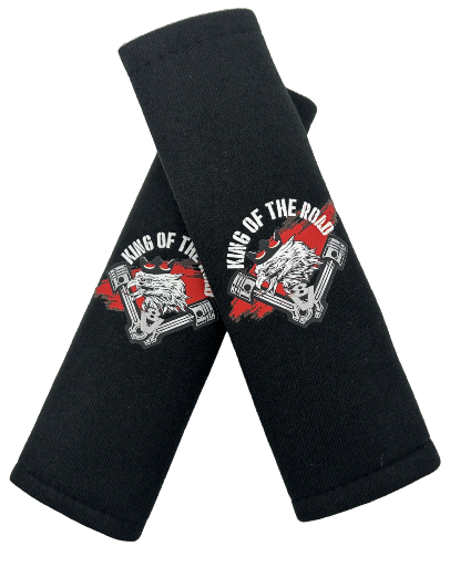Sada 2 kusů návleků na bezpečnostní pásy s potiskem “Eagle King Of The Road RED”. Rozměry 26 x 7,5 cm.